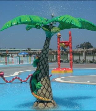 新型水上樂園設備蜥蜴椰樹LT-XP127是蜥蜴和椰樹充滿想象的結合,設計師突破以往小品單一形象的禁錮,充分發揮想象力,讓我們似乎看到了那海邊搖曳的椰樹,聽到了大海拍浪的聲音。整體效果畫面感非常強。這樣一款噴水設備特別適合在水上樂園的戲水池作為兒童水上樂園設備,另外放置在造浪池沙灘上也非常好看。